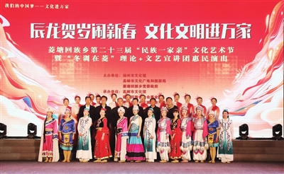 2月21日下午,菱塘回族乡第二十三届“民族一家亲”文化艺术节暨“冬训在菱”理论+文艺宣讲团惠民演出在菱成功举办。演出在威风鼓、舞蹈《龙韵腾飞》中拉开序幕,紧接着,文艺汇演舞蹈《大漠敦煌》、乐器合奏《美丽的神话》、小品《赡养风波》、旗袍秀《书简》等节目陆续上演。欢快的音乐、优美的舞姿、璀璨的灯光、精彩的演出赢得了现场观众的阵阵掌声和欢呼声。
