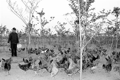 目前,落户于车逻镇太丰村,计划总投资1.2亿元的扬州绿森源生态农业园旅游观光项目实现投资过半,一期工程建设已顺利完工。该项目集观赏、采摘、垂钓、花圃展示、家禽生态放养等于一体,图为2万多只鸡在林间放养。郑红梅/摄