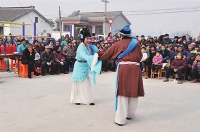 26日,由市文广新局主办、市文化馆承办的“文化惠民”送文艺下乡演出团到达卸甲镇大庵村,为当地群众呈上了一席文艺盛宴。演出以宣传贯彻党的十八精神、建设新高邮为主题,包括器乐、歌舞、戏曲等8个节目,受到群众的热烈欢迎。 晓晖/摄