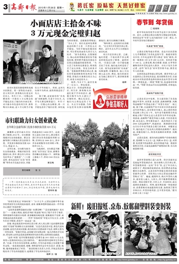 小面店店主拾金不昧 3万元现金完璧归赵