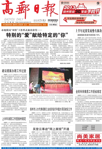高邮报 一版要闻 01 2013-07-031 2013年07月03日 星期三