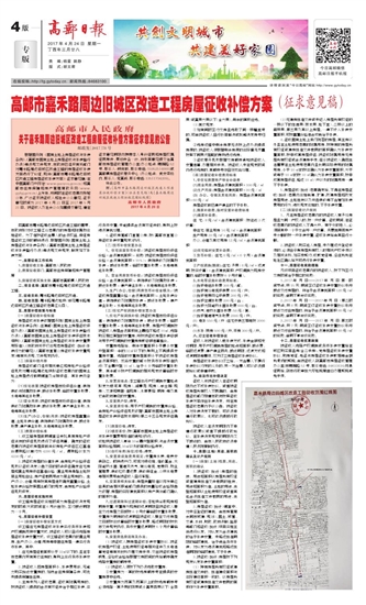 高邮市嘉禾路周边旧城区改造工程房屋征收补偿方案(征求意见稿)