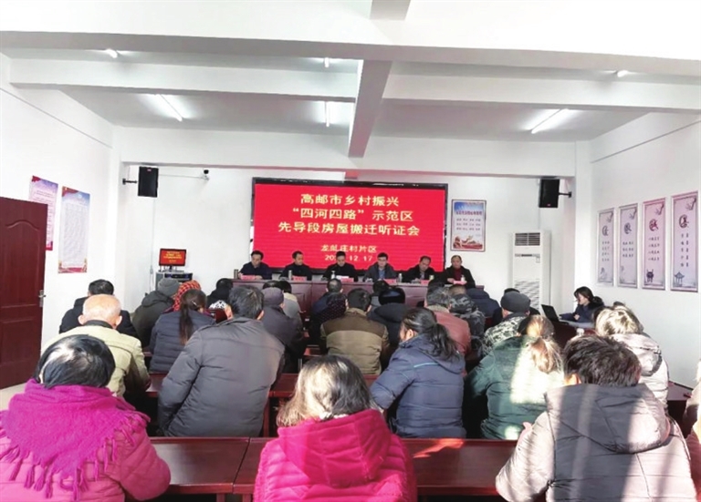 12月17日下午,龙虬镇召开“四河四路”乡村振兴示范区先导段房屋搬迁工程听证会,高邮市司法局副局长袁桂松主持会议。高邮市房屋征收管理中心主任孙以军、龙虬镇党委副书记王振、纪委书记陈玉鸿、人武部部长徐长山出席会议,农发公司、自然资源和规划局龙虬所、龙虬司法所、龙虬财政所,龙虬镇社会治理局、行政执法局、建设和生态环境局等部门负责人,龙虬庄村全体村组干部、被搬迁户和房屋搬迁工程指挥部部分成员参加会议。