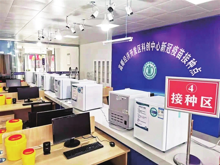 21日,经济开发区科创中心新冠病毒疫苗集中接种点正式启用。据悉,该集中接种点设置申报台2个、登记台7个、接种台11个,日最大接种能力可达2000剂次以上。截至目前,全市已有20家新冠病毒疫苗接种点。图为经济开发区科创中心新冠病毒疫苗集中接种点 。