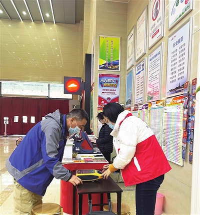 23日,市红十字会开展“我为群众办实事”AED安全巡检和急救知识宣传活动。活动中,市红十字会工作人员会同AED设备专业技术人员先后对市政府、行政服务中心、市人民医院、 抗战纪念馆、世贸购物中心等处的12台AED设备运作情况进行了检查维护,并向来往市民发放了《市民安全救护手册》《心肺复苏急救指南》等宣传折页等。图为活动现场。 陈亚楠 东方 摄影报道