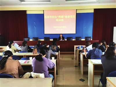 每年,市妇保院积极组织市、乡业务人员参加省市“两癌”检查业务培训班,并对全市妇保、妇科、乳检、乳腺彩超医生进行培训,并有计划组织相关医务人员到妇保院进行临床学习,坚持做到“三注重”,即查前注重培训,查中注重督导,查后注重追踪。通过专题培训、以会代训、临床学习及专家现场示范带教等方式,使基层每位业务人员都能熟练掌握两癌检查的服务内容、服务要求,确保按照规范要求提供服务。