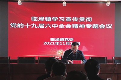 11月18日上午,临泽镇召开学习宣传贯彻党的十九届六中全会精神专题会议。镇党政领导班子成员、各党(总)支部书记、镇一办八局主要负责人、市属部门单位主要负责人参加了会议。