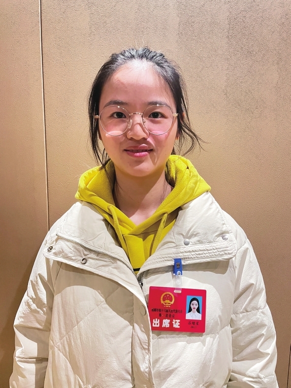 吕增星告诉记者,她就是甘垛镇河口村人。2020年毕业前偶然得知河口村村委会招聘材料员,想要为家乡出一份力的她立即报了名。作为村组织的“年轻血液”,刚开始她并不被村民看好。“小小年纪能做成事?”“年纪轻轻在村里肯定干不长!”等质疑声不绝于耳,但她还是在质疑声中坚持了下来。通过深入走访、请教前辈等方式,吕增星走进村民家中,走进群众内心,逐渐得到了大家的认可。2021年底她被选为市十六届人大代表,也是本次大会唯一一个“00后”代表。