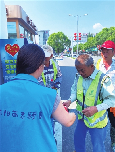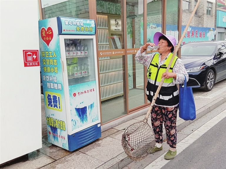 3日,市太阳雨志愿者协会大剧院驿站的“爱心冰柜”再次启用,今年是该协会开展“送清凉”活动的第三年。这处爱心补给站免费向交警、环卫工、外卖小哥等户外工作者发放饮用水,为他们送去炎炎夏日里的一丝清凉。 李晓莉 孔令玲 摄影报道