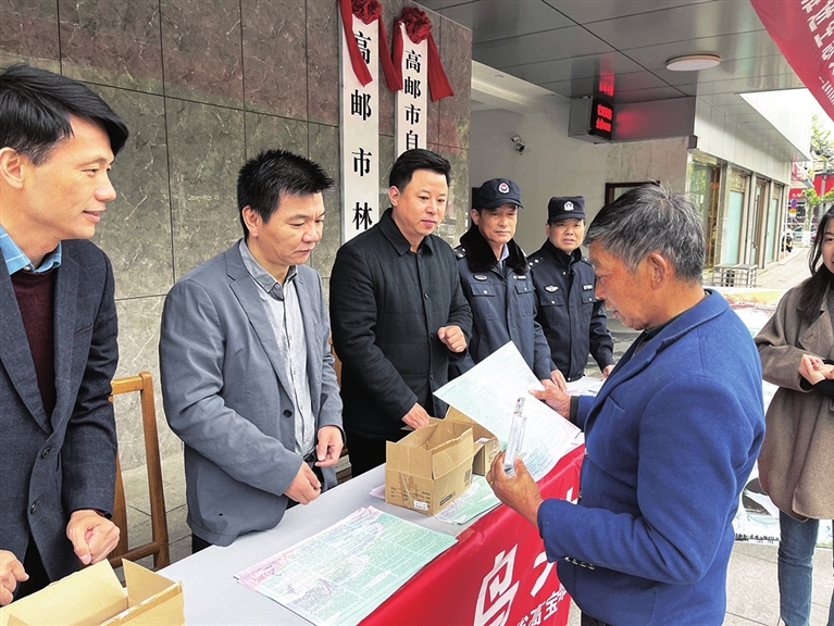 每年4月20日至26日是江苏省爱鸟周。23日下午,市自然资源和规划局、市供电公司、市公安局、省高宝邵伯湖渔政监督支队联合开展爱鸟科普宣传教育活动,呼吁广大市民关心关爱鸟类野生动物,共同促进人与自然和谐共生。图为工作人员向市民发放科普宣传手册。