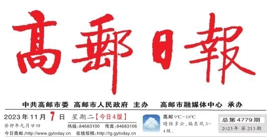 2023年11月7日 癸卯年九月廿四 星期二 今日4版 总第4779期 2023年第213期
