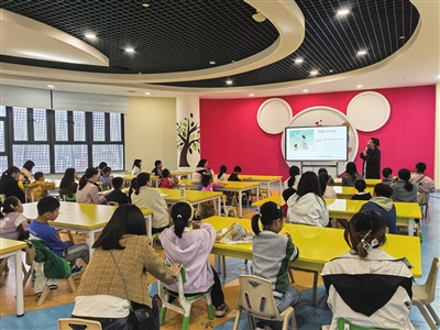 近日,市图书馆举行灯火读书会之《我的妈妈是精灵》阅读活动。来自市第一小学的领读人,通过讲解主人公陈淼淼发现母亲不为人知的秘密后的一系列家庭变故,带领孩子们探讨亲情中的爱与分离。图为活动现场。