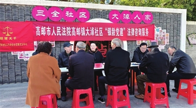 银耀天平映初心,发挥余热展风采。在中国传统节日“重阳节”到来之际,高邮法院机关党委会同离退休法院工作者协会分中心、离退休干部党支部在结对大淖社区开展“银耀天平”志愿服务活动,选派5名退休法官走进社区开展普法宣传,旨在通过退休法官的专业经验,为群众解疑释惑,帮助社区居民提升法律意识,推动法治社区建设。