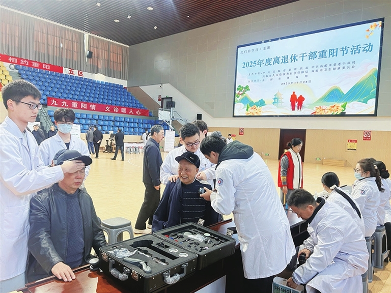 28日上午,由市委组织部、老干部局等多部门联合举办的2025年度离退休干部重阳节活动在市体育馆暖心开启。现场精心设置了人体成分测量、运动功能评估、肌肉与平衡能力测试等多个专业区域,让老同志们在“家门口”体验“健康嘉年华”。 居佳佳 摄影报道