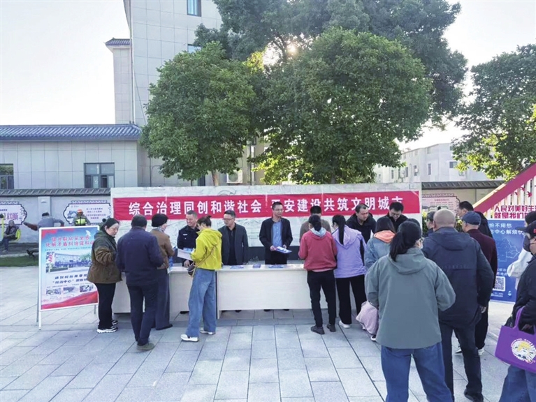 活动现场设置了醒目的宣传展板和咨询台,工作人员通过现场讲解、发放宣传资料、解答群众疑问等方式,向居民普及平安建设、法律法规等知识。不少居民驻足聆听,主动咨询与日常生活密切相关的法律问题和安全防范知识。这种面对面的交流方式,既增强了与群众的互动,也让法治理念在轻松氛围中深入人心。
