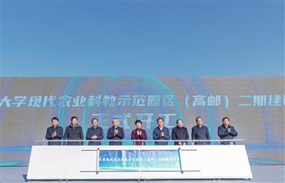 本报讯(记者 王莹) 8日上午,扬州大学现代农业科教示范园区(高邮)二期建设开工暨市校合作重大项目签约仪式在我市隆重举行。扬州市委书记张宝娟、省农业农村厅一级巡视员蔡恒、省住房和城乡建设厅副厅长张钧、扬州市委副书记韩骅、扬州市副市长余珽、扬州大学党委书记焦新安、扬州大学校长丁建宁、扬州大学副校长赵文明,我市领导张利、田醒民、张秋红、徐永宝、郑志明、周伟、蒋玮、赵国祥出席仪式,共同见证二期项目建设开工。