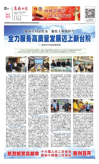 2022年,在市委市政府的正确领导下,高邮市场监管局围绕中心服务大局,立足主职主业,统筹推进疫情防控和服务经济社会发展,稳秩序、优监管、严执法、强服务、促发展,为助力高邮经济社会高质量发展作出了积极贡献。