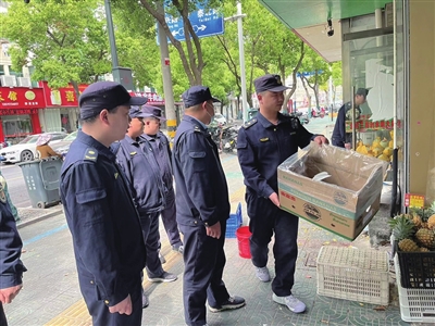 连日来,市城管局开展出店经营专项整治行动,规范沿街商铺经营秩序,展现整洁、优美、良好的城市形象。图为专项整治行动现场。
