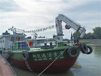 船舶污染治理后期将投入使用的高邮京杭运河垃圾收运船