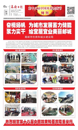 2023年,既是“十四五”规划承上启下的关键一年,更是谱写中国式现代化高邮篇章的精彩起笔之年,高邮市住房和城乡建设局深入学习贯彻落实党的二十大精神,充分发扬住建系统想在前、冲在前、干在前的良好传统和工作作风,以高质量发展打造江苏绿心、现代化建设加快中部崛起为目标,以“有解”思维超前谋划,在城乡建设过程中高点定位起好笔,在行业服务过程中履职担当提质效,在民生保障过程中严守底线保安全,建筑业、房地产业、物管小区微整治、城市基础设施配套完善、村镇建设、营商环境优化服务、安全维稳、全国文明典范城市创建等各领域工作稳步开展,以“奋斗”为笔擘画现代化新高邮建设“住建蓝图”。