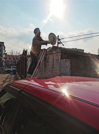 工作人员更换路灯