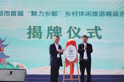 市农业农村局局长凌高玉和临泽镇党委书记李长太共同为高邮市首届“魅力乡邮”乡村休闲旅游精品示范点揭牌。