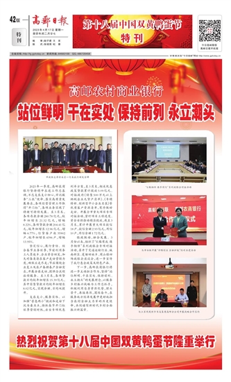 下一步,高邮农商银行将进一步主动担当作为,坚持“站位鲜明、干在实处、保持前列、永立潮头”的发展理念,以服务乡村振兴战略为工作总抓手,积极利用自身资源优势,埋头苦干,再接再厉,团结奋斗,在服务地方经济发展中更好地担当农村金融主力军的历史使命,共同谱写新时代乡村全面振兴新篇章。