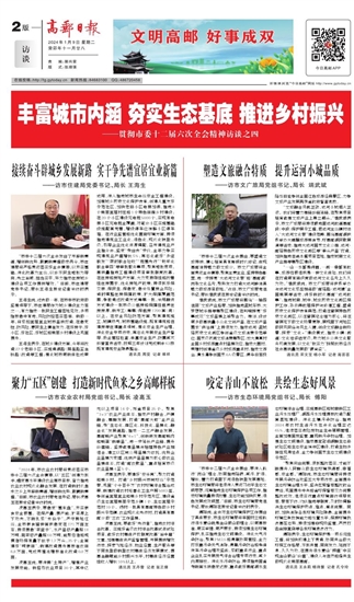 凌高玉表示,要建好“安乐窝”,聚力打造和美乡村。打造“乡村振兴市域环线”示范带,巩固“个十百千万”农村环境综合整治成果,新建改造农村无害化卫生户厕5083座,争创省宜居宜业和美乡村示范片区,建设省级生态宜居美丽示范乡镇1个、生态宜居示范村10个。选树一批具有高邮特色的乡村振兴示范镇、农业现代化先行村,打造具有高邮IP的“三农”工作品牌。