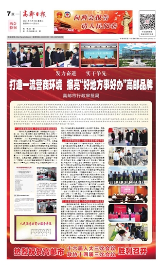 2024年,高邮市行政审批局将坚持以习近平新时代中国特色社会主义思想为指导,深入贯彻党的二十大精神,充分发挥“行政审批局+政务办+政务服务中心”三位一体优势,瞄准“扬州领先、省内一流”的定位追求,重点聚焦企业、项目、群众三大主体,持续优化营商环境、加快提升政务服务标准化规范化便利化水平,守正创新、实干争先,全面助力营商环境评价保持第一方阵,切实为全面建设现代化新高邮贡献更多“政”能量。