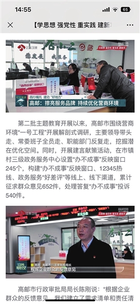 一是深化涉企商事制度改革。创新推出开办企业“一码一区一中心”服务模式,落实“四零四免”服务,实现“1”张营业执照可联动注销“N”张许可证,加快推进惠企政策“免审即享”。2023年全市新登记各类在业企业3419户,均在8个工作时内办结,节约企业费用约82万元。二是推进行政审批制度改革。实现48个“一件事一次办”;起草政务服务场所自助服务区建设运行规范地方标准,城市社区自助服务机覆盖率达85%;在扬州率先完成涉渔事项审批权限移交;探索实施“邮城通办”,初步梳理涉及14个部门60项事项;在全市建立政务服务“办不成事”反映机制,设置245个“办不成事”反映窗口,切实为企业群众提供“兜底”服务。三是主动融入智慧政务改革。全面推广“苏服办”“苏服码”,优化升级高邮旗舰店网页端和移动端;7个部门14个事项上线“云勘验”平台,办理时间压减90%,实现从行政审批服务领域拓展至公共资源交易领域。四是加快公共资源交易改革。全面推广政府采购跨省远程异地评标,规范分散采购流程,优化保证金“一键退付”,在11个应用场景推广使用数字人民币超13.01亿元,不见面交易率达100%。