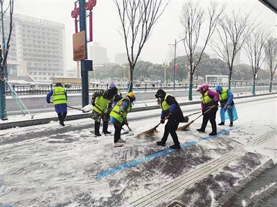 4.加强管理,精耕细作打好“环卫保洁”持久战。一是强化督查考核机制。加大日常检查频次,组织专项督查230余次,查找整改问题9100余条,有效落实全流程、闭环式、系统化管理机制。约谈环卫一体化服务企业负责人,加大考核力度,促进问题整改,提升作业质量。二是严把清扫保洁质量关。提高环卫“人工+机械化”保洁清扫效率,生活垃圾实现日产日清,定期开展“环境卫生大扫除”,清理卫生死角、杂物垃圾等。2023年共碱洗油污路面5400余处(次),清掏空调背机5900余处(次)、清理卫生死角1000余处、清理乱堆乱放建筑垃圾1400余处,清除沿街和社区各类杂物垃圾19000余处(次),拖运垃圾杂物共计3400余吨。三是抓实大气污染防治。落实城管领域防尘降尘作业方案,优化市区主次干道清扫保洁、洒水喷雾作业。四是积极应对寒潮天气。闻“雪”而动,12月18日围绕主次干道、桥梁、坡道等重点部位,提前撒盐防冻,机械作业车辆夜间除雪,次日凌晨5:00全体环卫工人上路扫雪,确保市民安全顺畅出行。