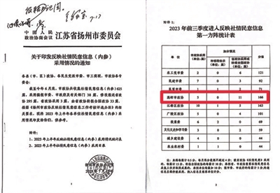 高邮市政协社情民意信息工作位列扬州第一方阵。