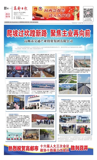 2024年是贯彻落实党的二十大精神的承上启下之年,也是交投集团巩固改革成果的关键之年。全体交投人将以市委十二届六次全会精神为指引,无惧风雨、无惧挑战,奋力开辟新赛道、增创新优势、跑赢新赛程,为全面建设现代化新高邮做出新贡献!