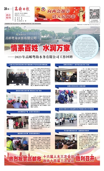 为保障全市供水安全,确保群众用水无忧,2023年,高邮粤海水务有限公司在市委、市政府及双方股东的正确领导和关心支持下,坚持以习近平新时代中国特色社会主义思想为指引,统筹做好重大工程建设、生产运营调度、二次供水管理等各项工作,严控水质,筑牢优质供水“安全线”;强化管理,守护稳定供水“生命线”;提升服务,构建供水保障“便民线”,从“源头”到“龙头”全流程强化安全保障,全力以赴为保障全市供水平稳有序贡献坚强“粤海力量”。