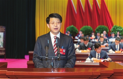 市长田醒民作政府工作报告。尤炳元 摄