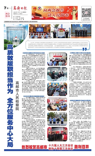 2023年,在市委和上级检察机关的坚强领导下,在市人大及其常委会的有力监督下,高邮市检察院以习近平新时代中国特色社会主义思想为指导,全面学习把握落实党的二十大精神,全面学思践悟习近平法治思想,紧紧围绕市委各项决策部署,能动履行检察职能,全力护航经济发展。1名干警被最高检荣记个人一等功,2次全省检察工作现场经验交流会在邮召开,6次在全省相关会议上交流高邮经验,10件案事例入选省级以上典型案事例。