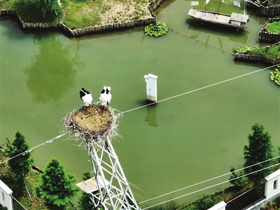 东方白鹳在江苏之心筑巢