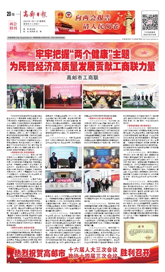 2024年 ,市工商联将坚持以习近平新时代中国特色社会主义思想为指导,认真贯彻学习习近平经济思想、习近平总书记关于做好新时代党的统一战线工作的重要思想,全面贯彻信任、团结、服务、引导、教育方针,服务党的统一战线工作和经济工作,服务增强党对民营经济的领导力和对民营经济人士的凝聚力,服务民营经济高质量发展和建设高素质的民营经济人士队伍,为建设“强富美高”现代化新高邮作出更大贡献。