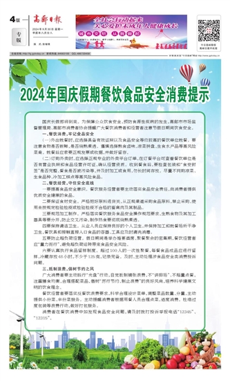 国庆长假即将到来。为保障公众饮食安全,预防食源性疾病的发生,高邮市市场监督管理局、高邮市消费者协会提醒广大餐饮消费者和经营者注意节假日期间饮食安全。
