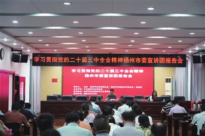 日前,学习贯彻党的二十届三中全会精神扬州市委宣讲团报告会在我镇举行。扬州市委宣讲团成员、扬州市委党校科研处处长吴玲作专题宣讲报告。临泽镇党委书记冯长征主持报告会。