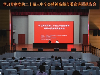 宣讲中,李深红全面系统地解读了党的二十届三中全会精神,从深入学习领会党的二十届三中全会主要精神、全面准确把握进一步全面深化改革的重大举措、全力以赴抓好全会精神贯彻落实三个方面,对全会精神进行了系统宣讲,立足高邮、周山实际,讲解贯彻落实全会精神的各项举措。