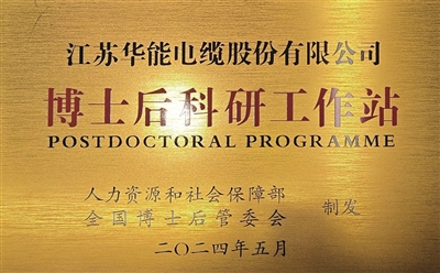 华能电缆荣获国家级博士后工作站称号