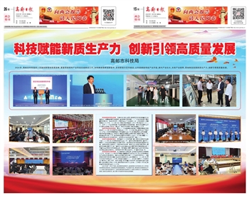 2024年,高邮市科技局深入实施创新驱动发展战略,紧紧围绕扬州产业科创名城建设工作,加快推进国家创新型市、省创新型示范市建设,以科技赋能传统产业升级、新兴产业壮大、未来产业培育,因地制宜发展新质生产力,创新引领高质量发展。