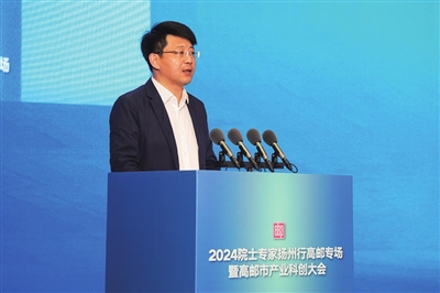 高邮市委书记田醒民在“2024院士专家扬州行高邮专场暨高邮市产业科创大会”上致辞