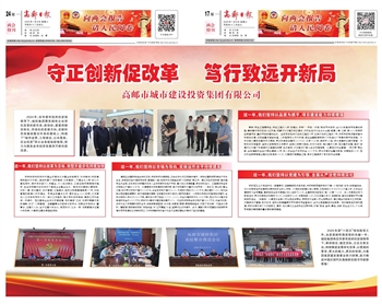 2025年是“十四五”规划收官之年,也是高邮积厚成势的关键一年。城投集团将在市委市政府的坚强领导下,秉持信念、锚定目标,立足主责主业,持续推进全面深化改革,以更高的要求、更大的魄力、更实的举措,为集团高质量发展事业努力拼搏,助力推进中国式现代化高邮新实践书写崭新答卷!