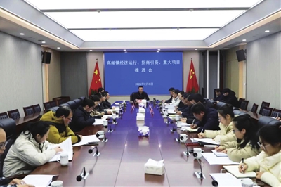 2月8日下午,高邮镇党委副书记、镇长黄晓帅主持召开高邮镇经济运行、招商引资、重大项目推进会,对全镇一季度经济工作进行再梳排、再研判、再部署。镇领导管正斌、黎鹏、刘扬阳、徐以维、陈莎、凌定琴参加会议。