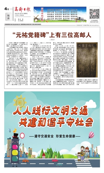北宋有一桩著名的“元祐党籍案”,由此产生“元祐党籍碑”。这个碑上有三位高邮人,他们是孙觉、孙升、秦观。