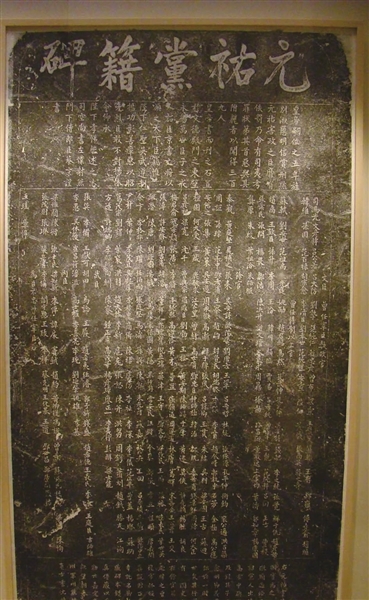 绍圣元年(1094年),章惇任宰相,又恢复变法新政,元祐党人遭到全面打压。到了元符三年(1100年),宋哲宗去世,宋徽宗继位,向太后垂帘听政,其间,再次起用元祐党人。然而好景不长,9个月后,宋徽宗正式执掌大权,任用蔡京为宰相,重新恢复变法新政,元祐党人再次遭受打击。宋徽宗、蔡京将在元祐时期反对新法及在元符时期有过激言行的大臣列出120人,分别定其罪状,称作奸党,并将这120人姓名刻于石上,由宋徽宗亲自题写碑名“元祐党籍碑”,竖立于端礼门外,并规定不许党人子孙留在京师,不许参加科考,碑上列名者“永不录用”。后又将元祐党人增至309人,蔡京手书姓名,发各州县,要求仿京师立碑“扬恶”。309人中有文臣曾任宰臣执政官27人、曾任侍制以上官49人,余官177人,武臣25人、内臣29人,还有为臣不忠、曾任宰臣2人。