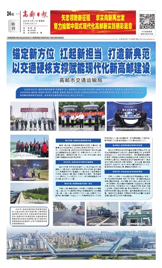 2025年,高邮交通将锚定高质量发展目标,以重点交通工程为突破引擎,以管理服务效能提升为核心抓手,扛稳交通强市建设使命担当,统筹安全与发展双底线,加速构建全域联通的现代化综合交通网络,奋力打造现代化新高邮建设的交通标杆,以实干实绩彰显开路先锋的硬核担当。