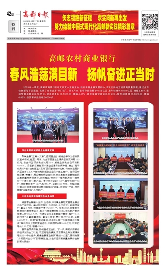 春风浩荡满目新,扬帆奋进正当时。下一步,高邮农商银行将继续发扬全力以赴、攻坚克难的精神,紧紧围绕业务发展提质增效这一中心任务,畅通金融惠企利民“最后一公里”,持续发挥“乡村振兴主办行”的职责担当,为全市经济高质量发展作出新的更大贡献!
